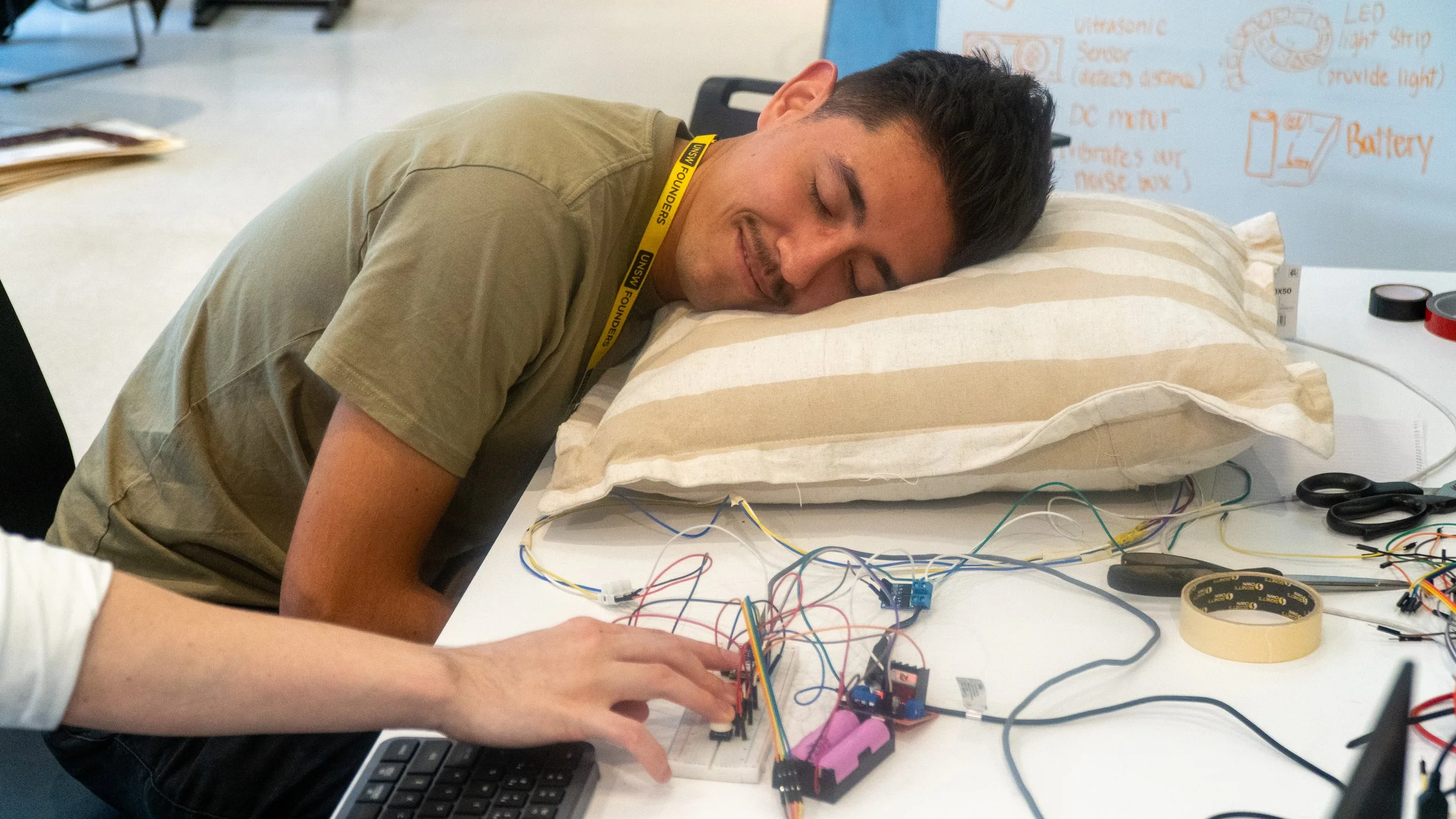 The Terrible Ideas Hackathon returned to UNSW for its third run - bringing 47 hours of chaos that gave us tables made of people, sleep-ruining gadgets and a nightmare pillow called... U Never Sleep Well.